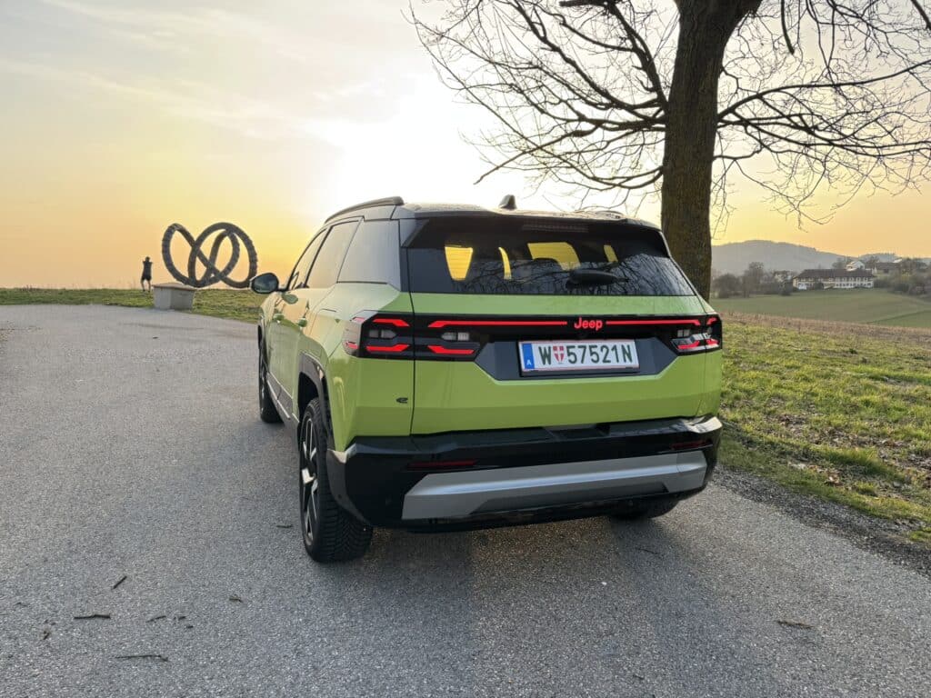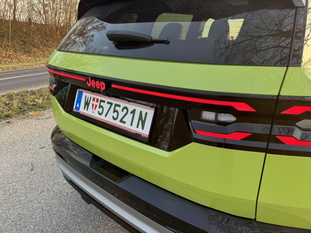 Besonders auffällig: die aerodynamisch optimierten Details wie Luftleitbleche und die markanten, über die gesamte Breite gezogenen Heckleuchten. Dazu kommen charmante Easter Eggs, wie man sie von Jeep kennt – kleine grafische Spielereien am Fahrzeug, die den Entdeckergeist wecken.