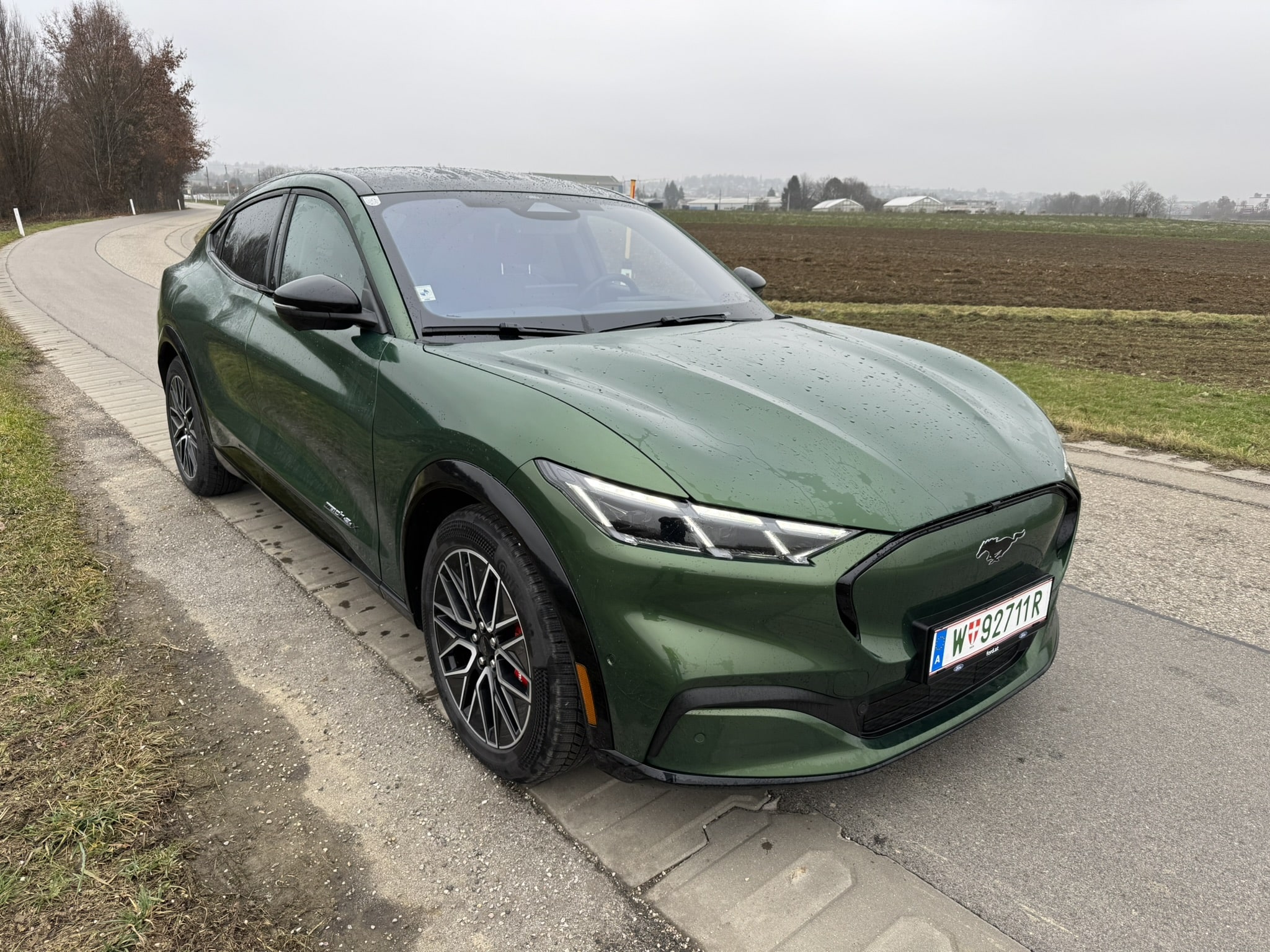 Unser Testwagen unterstrich diesen Anspruch zusätzlich mit der markanten Lackierung „Eruption Green“ – ein satter Grünton, der je nach Lichteinfall hell-dunkel changiert und dem Mach-E eine besonders edle, zugleich aber auch sportliche Note verleiht.