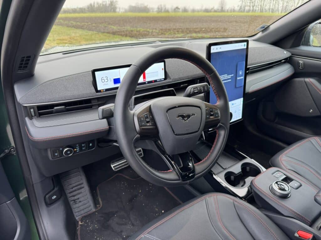 Im Innenraum setzt Ford auf die gewohnt moderne, reduzierte Gestaltung mit klarer Linienführung und hochwertigen Materialien. Zentraler Blickfang ist der große Infotainment-Touchscreen, der zusammen mit dem digitalen Cockpit eine zeitgemäße Bedienumgebung schafft. Wie bei allen modernen Autos konfiguriert man sich seine Lieblingseinstellungen im ersten Step vor, die restliche Bedienung wird dann größtenteils über Apple Car Play oder Android Auto ohne größere Probleme ablaufen. Auch die Sitze des Mach-E sind top – sie bieten auch auf längeren Strecken komfortablen Halt.