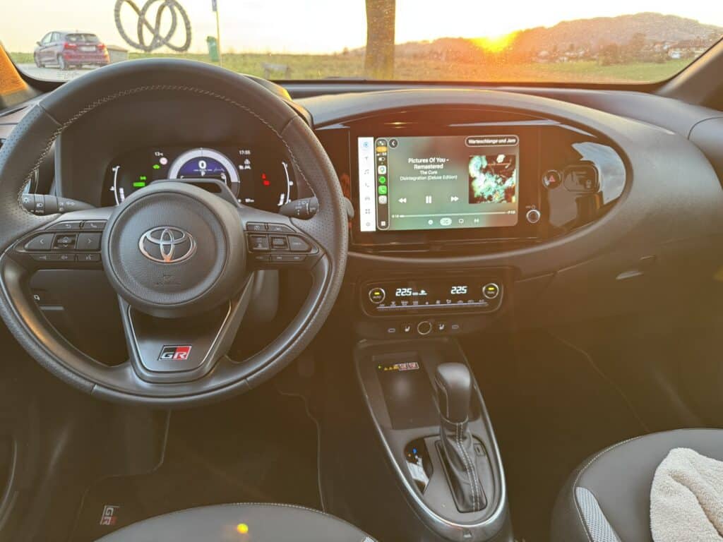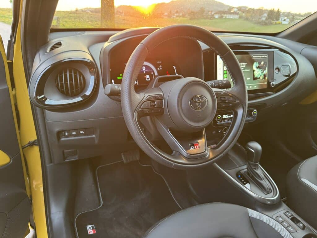 Die GR-spezifischen Details – von den Badges bis zu den Felgen – wirken dabei nicht übertrieben, sondern unterstreichen den dynamischen Anspruch des Fahrzeugs. Kurz gesagt: Der Aygo X fällt auf – und kommt an.