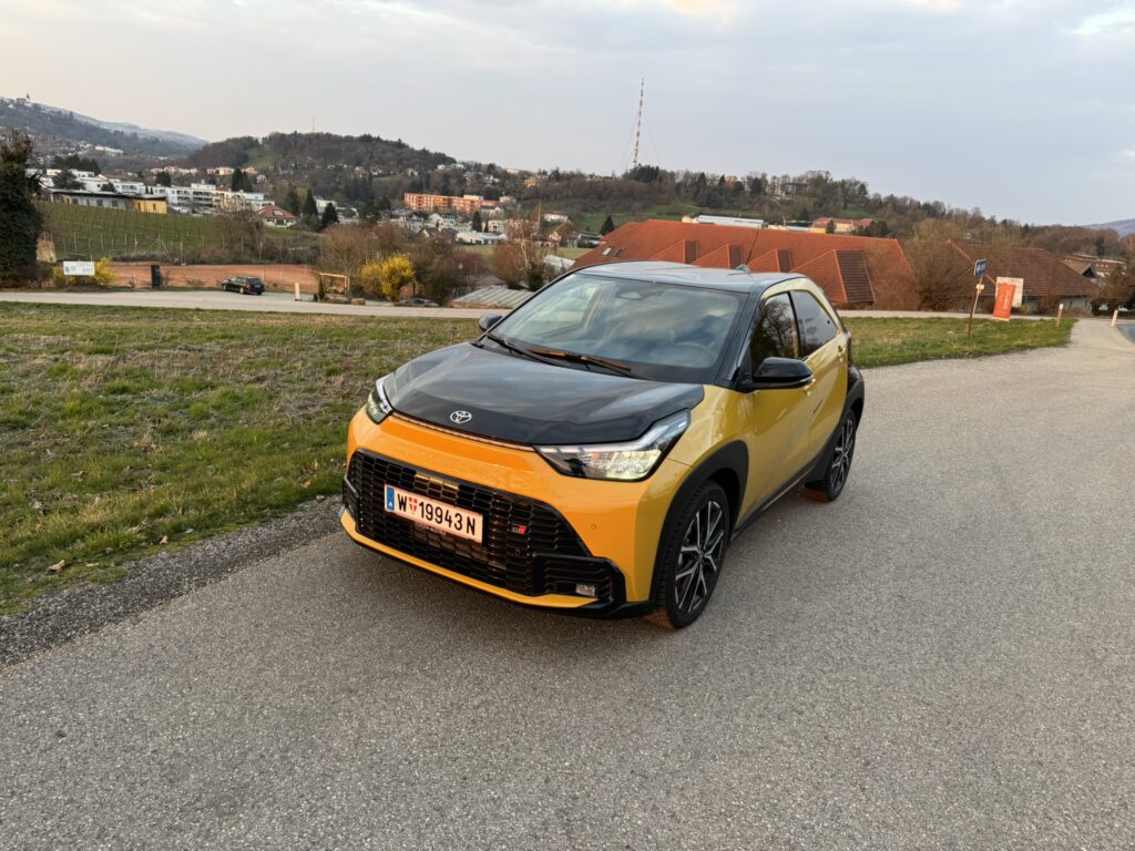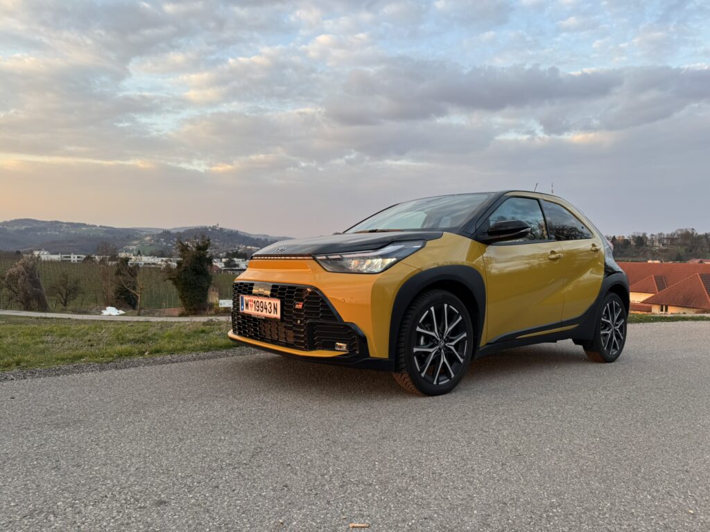 Mit dem Aygo X hat Toyota seinem kleinsten Modell bereits vor einigen Jahren einen kräftigen Image-Boost verpasst. Als GR Sport Hybrid setzt der urbane Crossover jetzt noch einen drauf – optisch wie technisch. Unser Testwagen in auffälligem Mustard-Gelb mit schwarzer Motorhaube, markanten 18-Zoll-Felgen und zahlreichen GR-Logos zeigt klar: Understatement ist hier fehl am Platz.