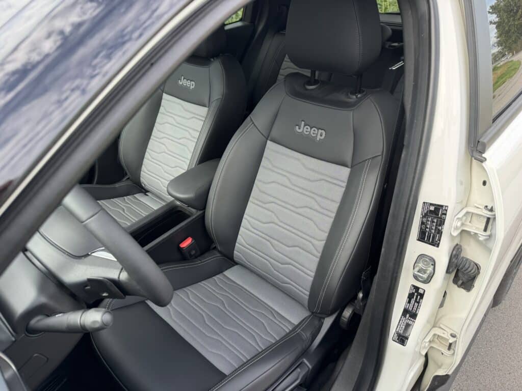 Jeep war früher nicht gerade für luxuriöse Extras in den kleineren Modellen bekannt. Beim neuen Avenger Overland sieht das anders aus: Voll-LED-Scheinwerfer, Ambientebeleuchtung, beheizbare Sitze, eine beheizbare Frontscheibe, elektrisch einklappbare Spiegel, induktive Ladestation – alles mit an Bord. Auch praktisch: die elektrische Heckklappe. Dazu kommen nette Details wie Velours-Fußmatten und eine magnetische Abdeckung in der Mittelkonsole á la iPad. Kurz gesagt: Der kleinste Jeep fühlt sich nicht wie „Einstieg“ an, sondern richtig komplett.