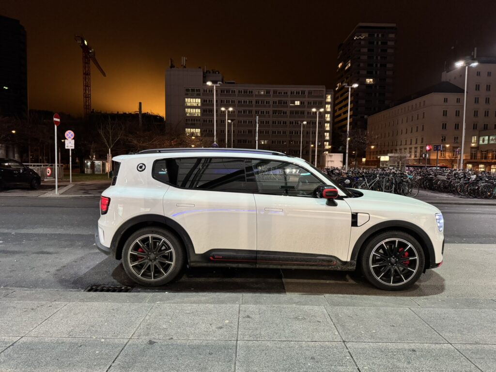 Eines muss man dem Smart #5 gleich mal vorweg lassen: Er gehört definitiv nicht zu den optisch gleichgeschorenen China-SUVs, die derzeit angeboten werden. Der Smart definiert sich über eine Vielzahl an erfreulichen Ecken und Kanten, an dem das Auge des Betrachters hängen bleibt. Vor allem das Lichtdesign vorne und hinten findet man in dieser Art kein zweites Mal. Dazu kommt ein extrem voluminöser Wagenkörper, mit riesigen 21-Zoll Rädern, versenkbare Türgriffe und ein senkrecht abfallendes Heck, welches einen rund 600 Liter großen Kofferraum verbirgt. Auch unter der vorderen Haube befindet sich ein Stauraum, der nochmals rund 50 Liter Fassungsvermögen beisteuert.