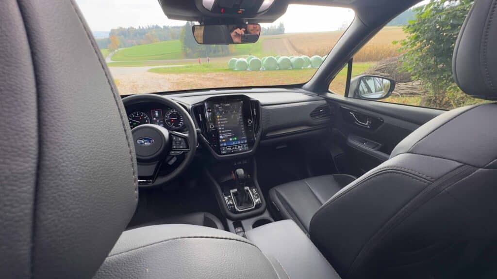 Die Ausstattung glänzt mit modernen Features: Infotainment‑System, Smartphone‑Integration, gute Sicht dank großer Scheiben und klarer Sichtlinien. Subarus typischer Allradantrieb (Symmetrical AWD) ist serienmäßig und gibt dem Fahrer auch bei wechselhaftem Wetter Sicherheit. Kleinere Wermutstropfen: Manche Materialien wirken nicht ganz Premium‑Niveau und bei sehr hohen Geschwindigkeiten oder ruppigem Gelände merkt man dann doch, dass der Fokus auf Alltag liegt und nicht auf Offroad‑Luxus.