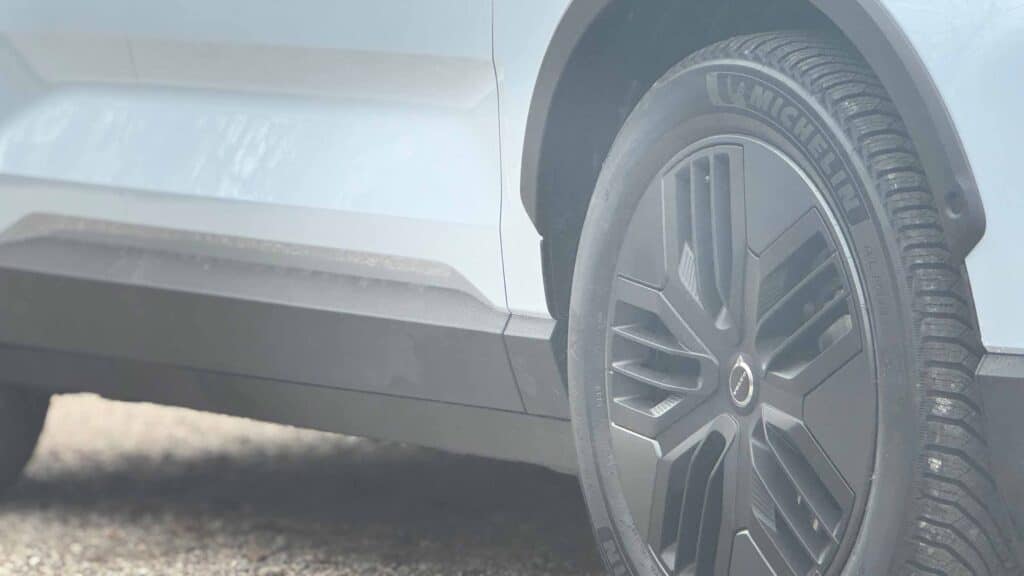 Wenn man aufs Strompedal tritt, merkt man sofort: Der EX30 Cross-Country hat Feuer unter der Haube. Der Allradantrieb sorgt dafür, dass Schwung sofort in Bewegung umgesetzt wird. Das heißt: Ampelstarts, Überholmanöver auf der Landstraße, alles geschieht mit beeindruckender Ruhe und Kraft. Die 0‑100 km/h in rund 3,7 Sekunden sprechen da eine klare Sprache.