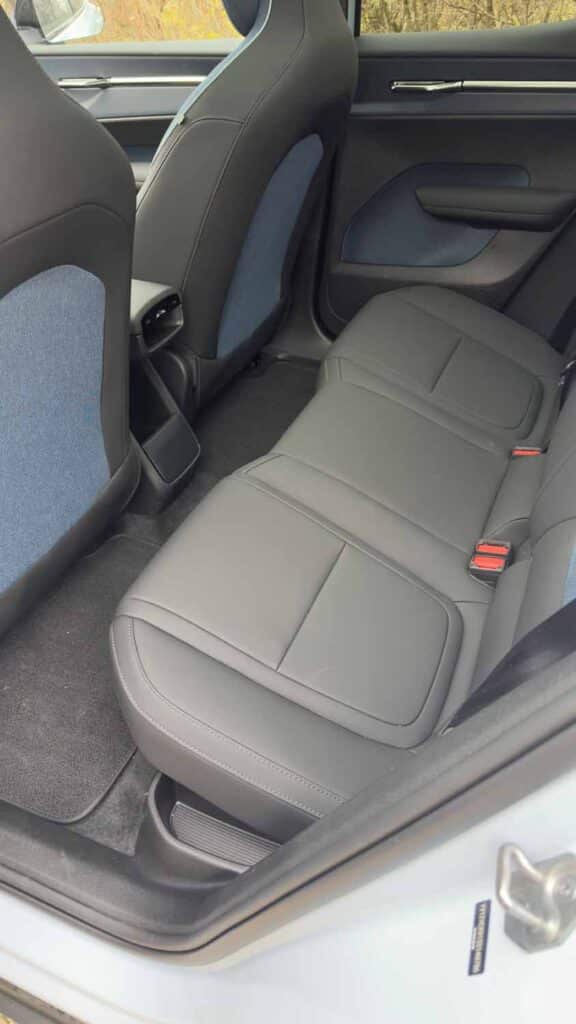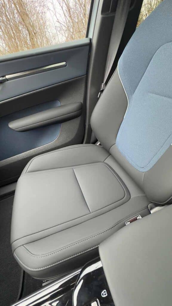 Innen drin: Unsere Variante mit Innenraum „Indigo“ bietet eine stimmige Kombination aus dunkleren/blauen Farbtönen, die im Zusammenspiel mit den helleren Außenfarben und der abgedunkelten Verglasung für ein schönes Ambiente sorgt. Die Materialien fühlen sich wertig an, recycelte Textilien, weiche Oberflächen, klare Linien , so wie man das von Volvo erwartet.
