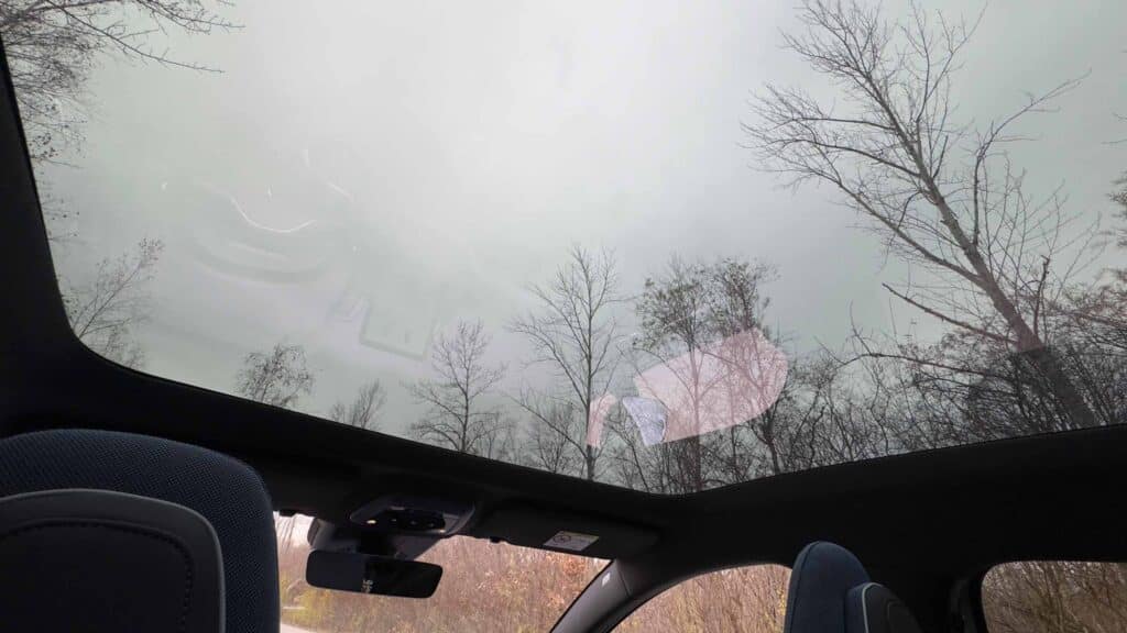 Der Sitzkomfort vorne ist sehr gut: elektrische Verstellung, gute Unterstützung im Rückenbereich, gute Übersicht nach vorne. Die abgedunkelten Scheiben sorgen für angenehme Lichtverhältnisse, im Sommer ein Pluspunkt. Im Fond könnte der Raum etwas knapper sein, bei längeren Fahrten mit größer gewachsenen Mitpassagieren sitzt man etwas gedrängt. Das Glas‑Panoramadach (in unserer Ausstattung) sorgt für Helligkeit, aber durch die abgedunkelte Verglasung wird das oft angenehmer, da es nicht zu hell wird.