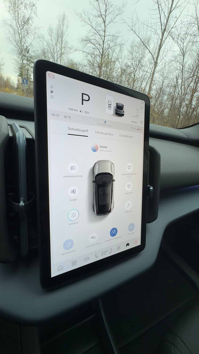 - Bedienung: Fast alle Elemente über das zentrale Display statt klassischer Bedienelemente – Eingewöhnung nötig.