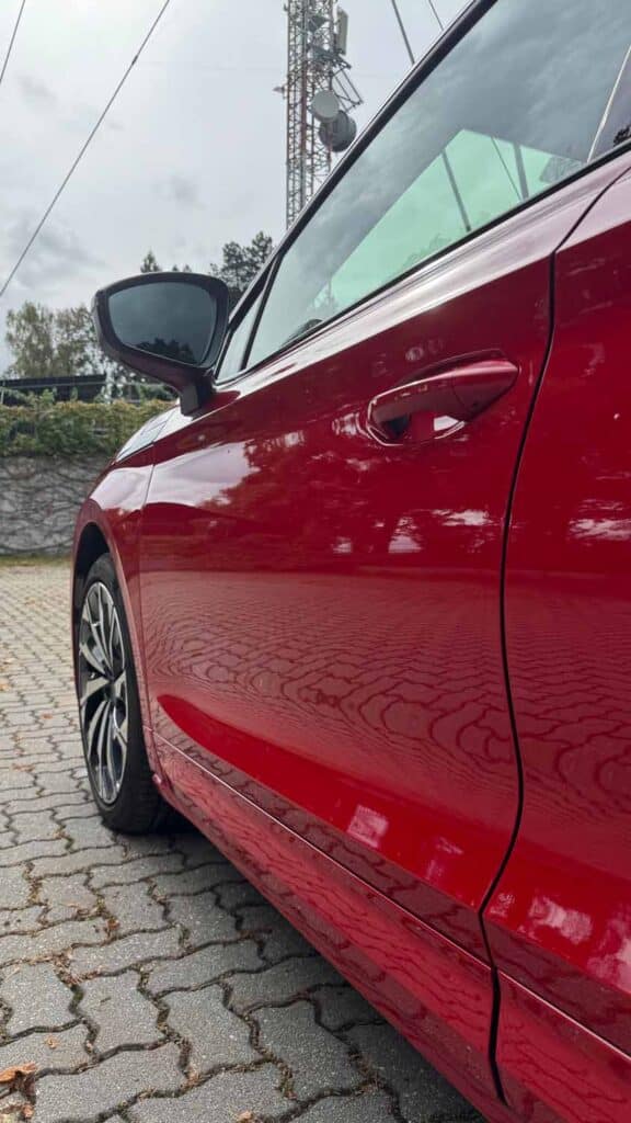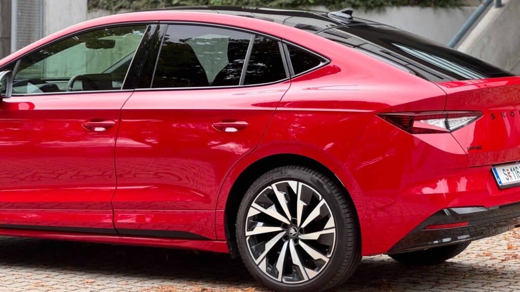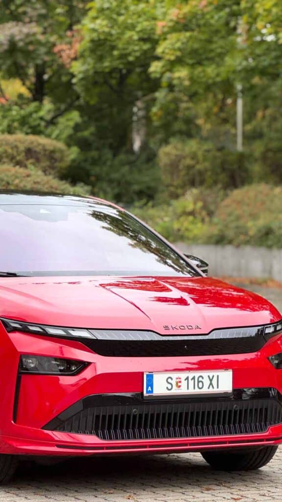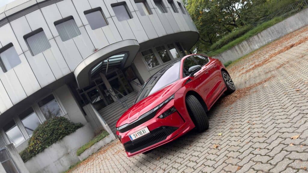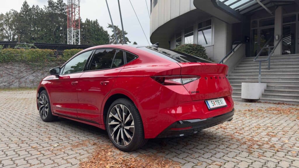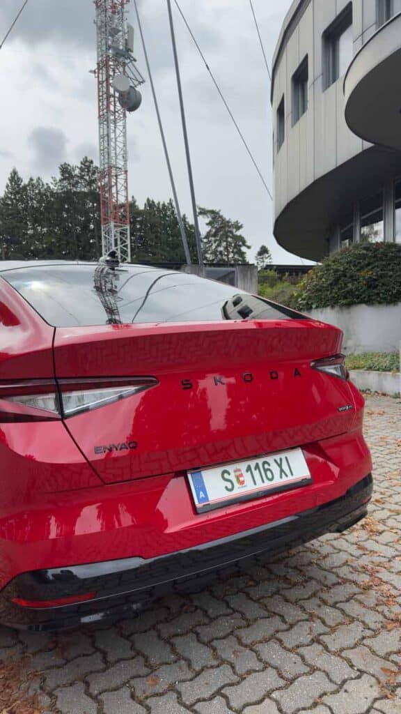 Wer elektrisch sportlich, aber nicht kompromisslos unterwegs sein will, findet hier einen Daily-Driver mit Stil. Ganz ehrlich: Wer sagt, Elektro kann nicht sexy sein, hat diesen Enyaq noch nicht gefahren. Ich selbst wurde 3x angesprochen, wie schön das Auto da steht, vor allem in diesem Rotton der ihm einfach unglaublich gut passt. Rote Autos sind wie gelbe Autos, das muss passen, hier stimmt`s einfach vom Dach bis zu den Pneus.